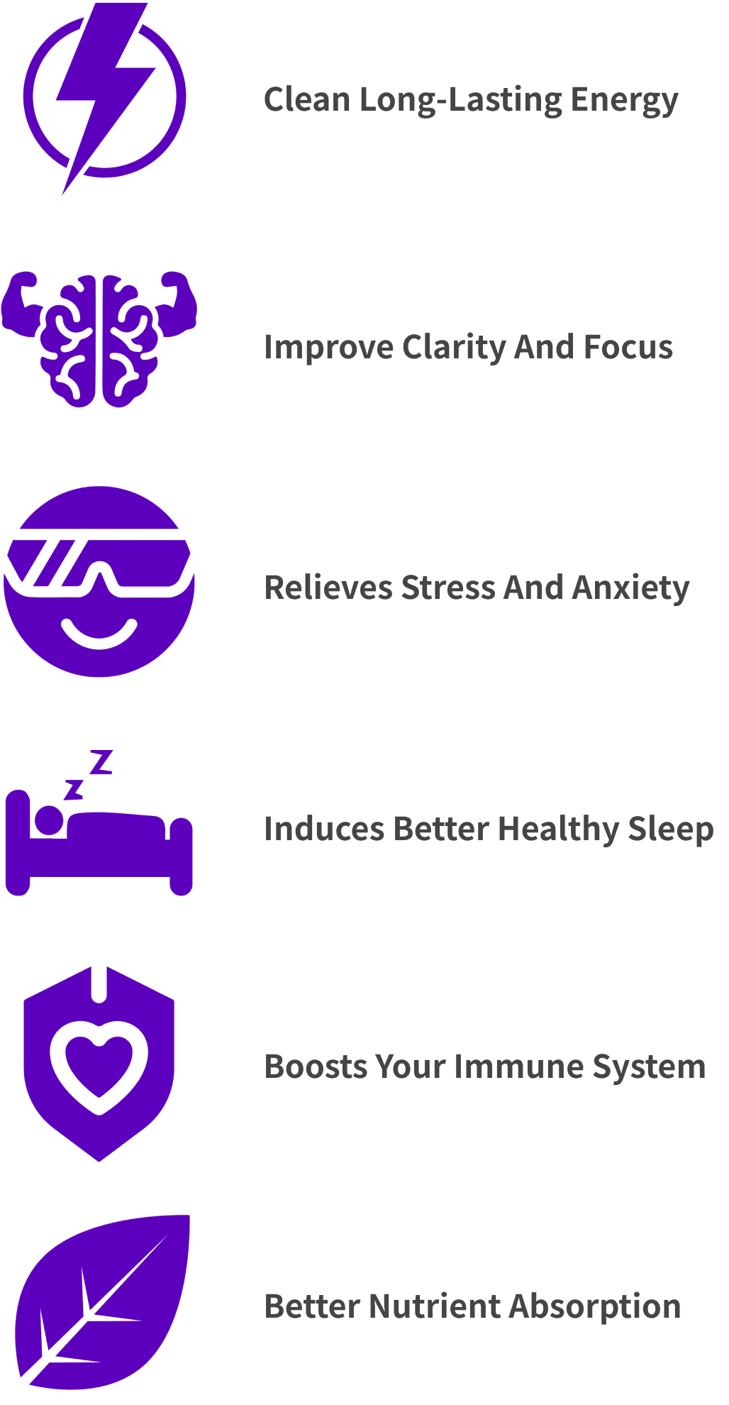 Our unique and natural Mushroom formulahelps balance stress and energy, improves focus, no bad side effects like caffeine.